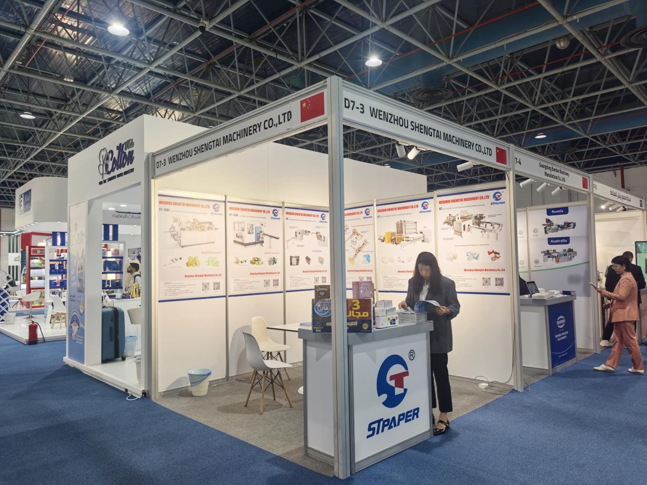 Wenzhou Shengtai Machinery Co., Ltd. made a brilliant appearance at booth D7-3. During the exhibition, the company's Smart tissue paper equipment attracted the attention of many customers and reached several cooperation intentions.
